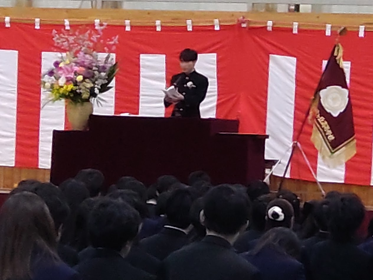 卒業生代表の答辞では、答辞では、三年生の先生方それぞれに対し、日々の支えや励ましへの感謝が丁寧に語られ、聞く人の胸を打つ時間となりました。